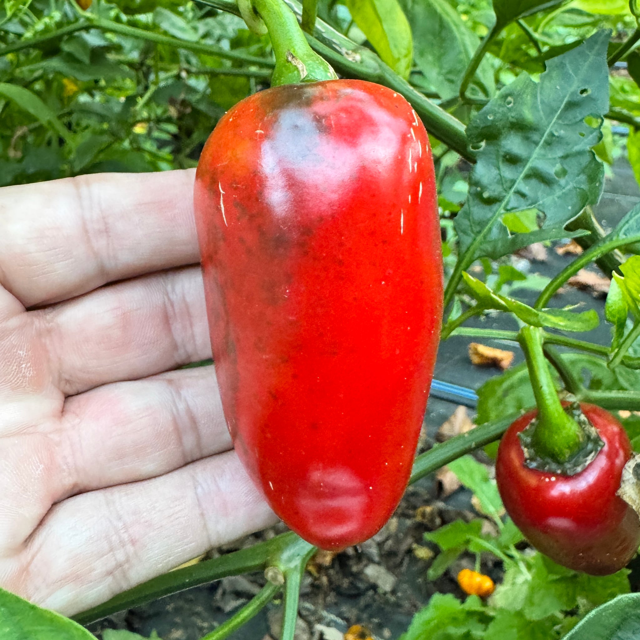 La Bomba II Jalapeño - This premium hybrid jalapeño delivers exceptional flavor, uniform size, and reliable performance. The sturdy, upright plants produce abundant, thick-walled peppers about 3–4 inches long, ripening from deep green to vibrant red. With a balanced medium heat and a flavor that’s bold, slightly sweet, and smoky, La Bomba II is perfect for salsas, poppers, pickling, and sauces. Its strong disease resistance, early maturity, and sunscald protection make it a standout choice for home gardeners and market growers alike.