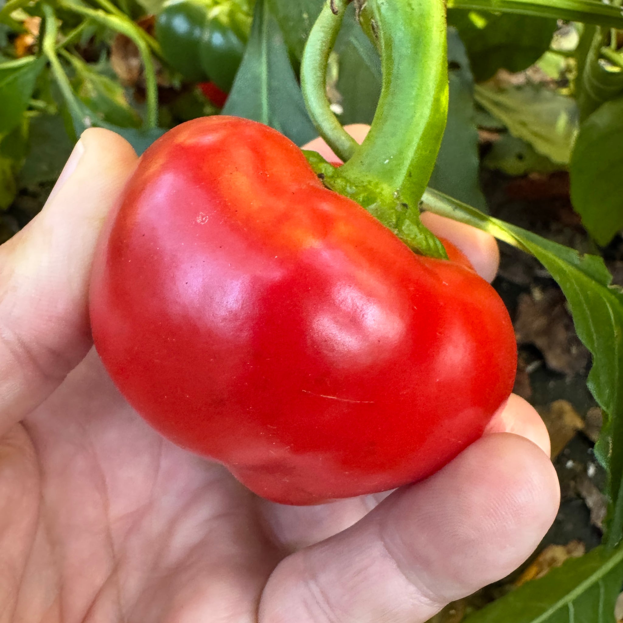 Mexibell is a mild, chili-flavored bell pepper hybrid that delivers sweet taste with a gentle heat. Thick-walled, blocky fruits reach 4–5 inches and ripen from green to chocolate to red, gaining flavor and warmth as they mature. Plants grow about 2–2.5 feet tall, produce heavy yields, and offer strong TMV resistance. Excellent for stuffing, roasting, grilling, or adding a mild kick to salsas and Mexican dishes. A reliable, award-winning pepper for gardeners who want bell pepper flavor with a little extra spark.