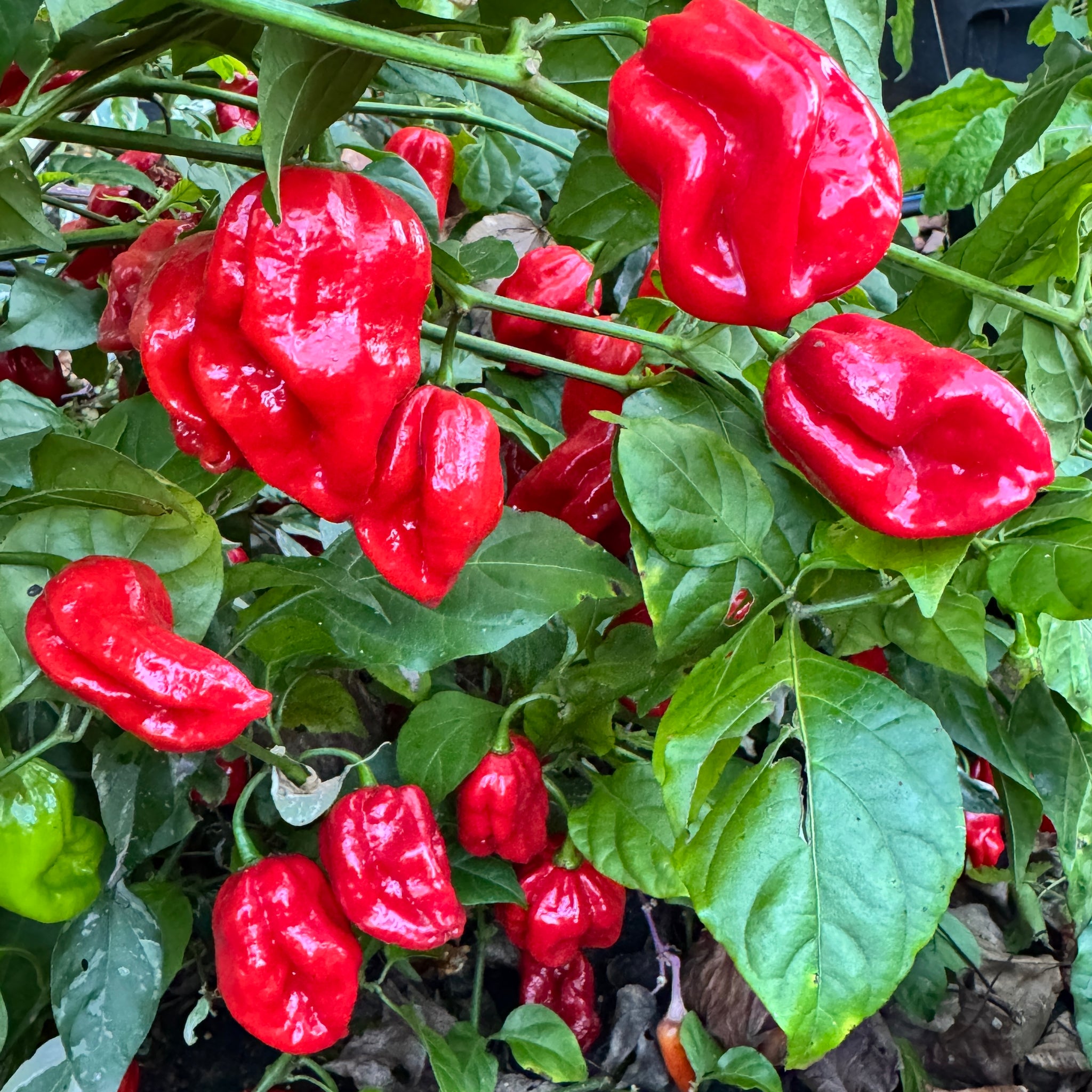 The Bhutlah Scorpion is an insanely hot superhot combining Ghost and 7 Pot/Douglah–Scorpion lineage, often blasting past 1.5–2 million SHU. First spotted in Chad Soleski’s garden, it’s known for huge, wrinkled, unpredictable pods that ripen from green to a fierce red. Plants grow over 3 feet tall and produce heavy yields of gnarly, blistering fruit. Beneath the heat are earthy, slightly fruity notes—if you can survive long enough to notice them. A violent, extreme pepper perfect for scorching powders and sauces. Definitely not for beginners.